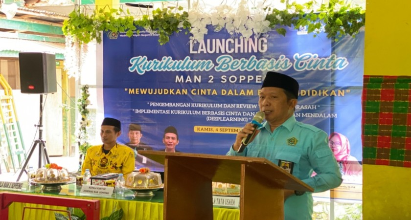 Marioriawa, (4/9) - Dalam rangka mendukung program Menteri Agama Republik Indonesia dalam mengintegrasikan nilai-nilai cinta kasih dalam proses pembelajaran, MAN 2 Soppeng resmi melaunching Kurikulum Berbasis Cinta (KBC) dengan tema “Mewujudkan Cinta dalam Ruh Pendidikan”. Kamis (4/9)
